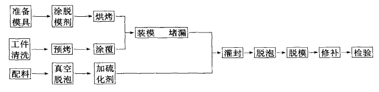灌封工藝按電器絕緣處理方式不同,可以分為模具成型和無模具成型兩種;模具成型又分為一般澆注和真空灌注兩種。在其它條件相同時一般採用真空灌注。普通的灌封工藝流程如下圖所示。