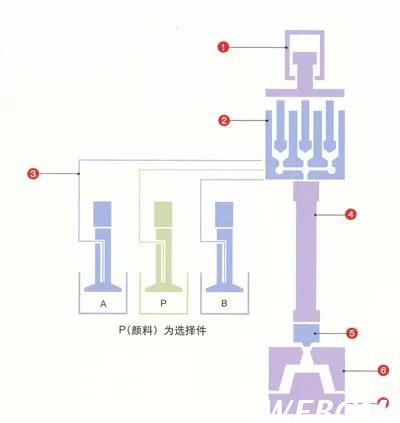 1.注射装置 LIMS具有能够在低压力下成型的特长要设定好压力和注射速度2.计量装置 使用加压泵,将A液和B液按一定比例(1:1)进行准确的计量后,让两种液体同时压出。3.供料装置将装在手提罐(或桶形罐)中的A液和B液原料用泵进行输送。4.混合装置通过动态搅拌器或静态搅拌器把两种液体进行充分混合,直接向模具内加压注入。5.阀控喷嘴由于喷嘴带有阀控,故不存在原料从喷口漏出的毛病。6.锁模装置随着供料装置、计量泵、注射装置的联动而进行锁模和开模。7.模具