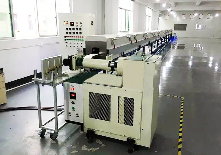 硅胶制品经挤出机挤出后,悬空通过前置高温硫化烘道实现预硫化和快速定型作用;然后通过后烘道进行充分硫化,解决了传统硅橡胶挤出硫化工艺根本无法解决的生产和质量难题;如挤出硫化薄壁管十分圆整,无任何变形;挤制硫化大直径硅胶管和厚壁管,表面无任何压痕;挤制硫化各种断面形状复杂的异型硅胶条;保证尺寸,形状十分美观,对于硬度以30度至70度的各种软硬硅橡胶均能保证优良的挤出硫化效果;烘道采用内外层为不锈钢;隔热性能优越,保温时间长,节约能耗,整洁美观,对制品无任何污染;采用特制石英加热管,具有高温和辐射交互利用,硫化时间短,热效率高;烘道到达设定温度后,会自动转为恒温控制,此时自动关掉一个区加热器,以达节约电能;可用于生产硅胶管、硅胶条、异形条、发泡管等。生产硫化时间短,生产效率高,每小时产量60-180KG左右;操作十分方便。